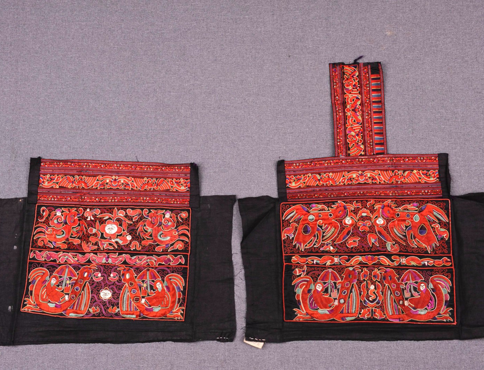 台江苗族皱绣双凤双麒麟蟠龙纹袖片