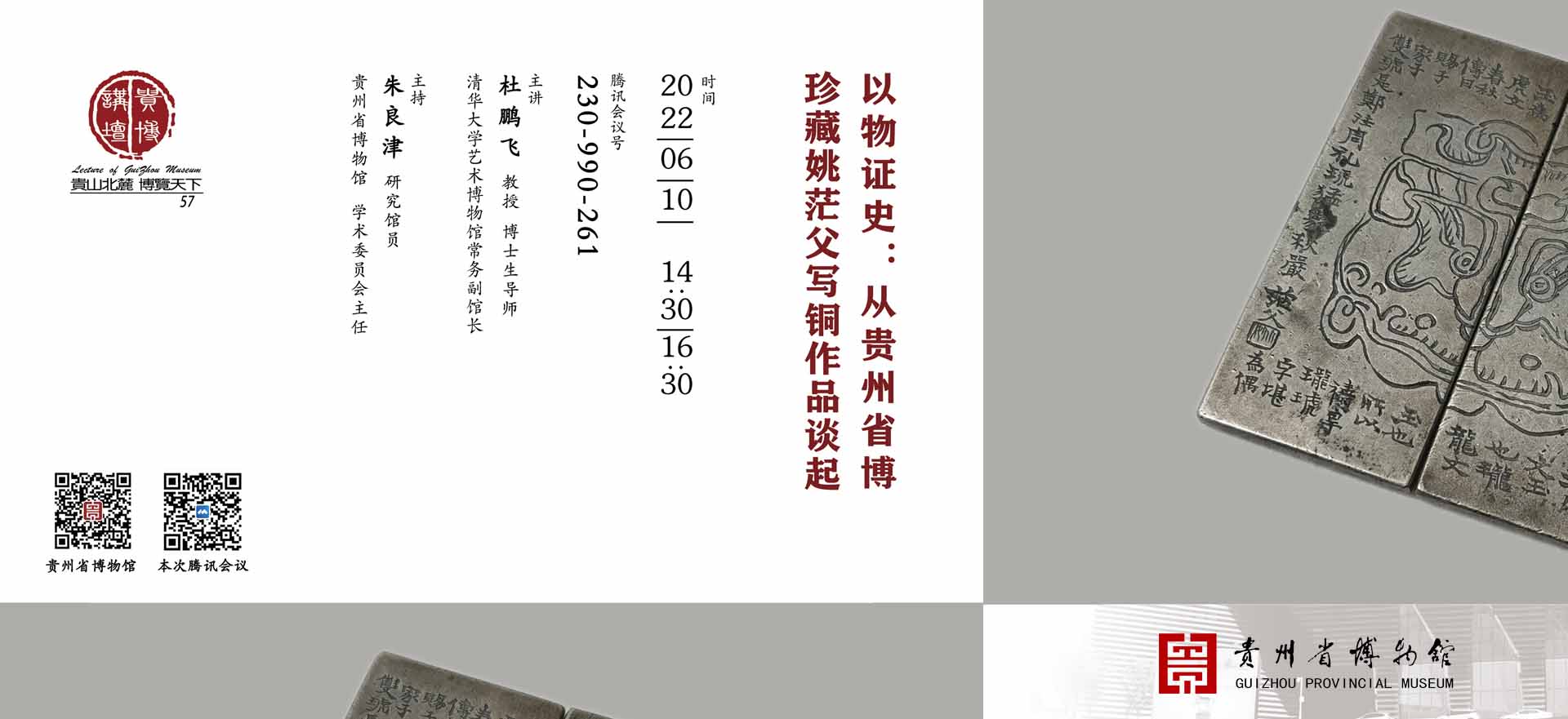 主题:以物证史:从贵州省博珍藏姚茫父写铜作品谈起时间:2022年6月10日(星期五)14:30—16:30腾讯会议号:230-990-261主讲:杜鹏...
