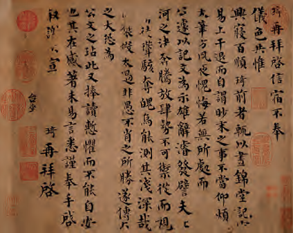 《北宋韩琦楷书信札》卷包含了韩琦的两札纸本墨迹。其中,《信宿帖》是为答谢欧阳修的《相州昼锦堂记》一文而作。欧阳修的文章千古传颂,使得昼锦堂声名鹊起。“...