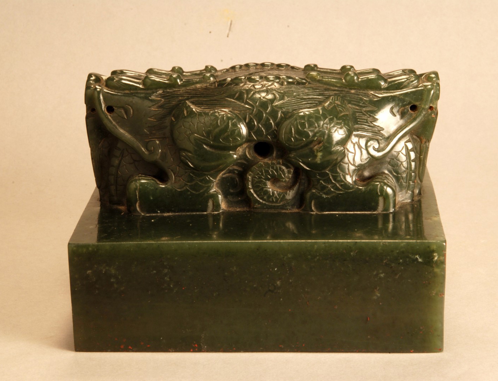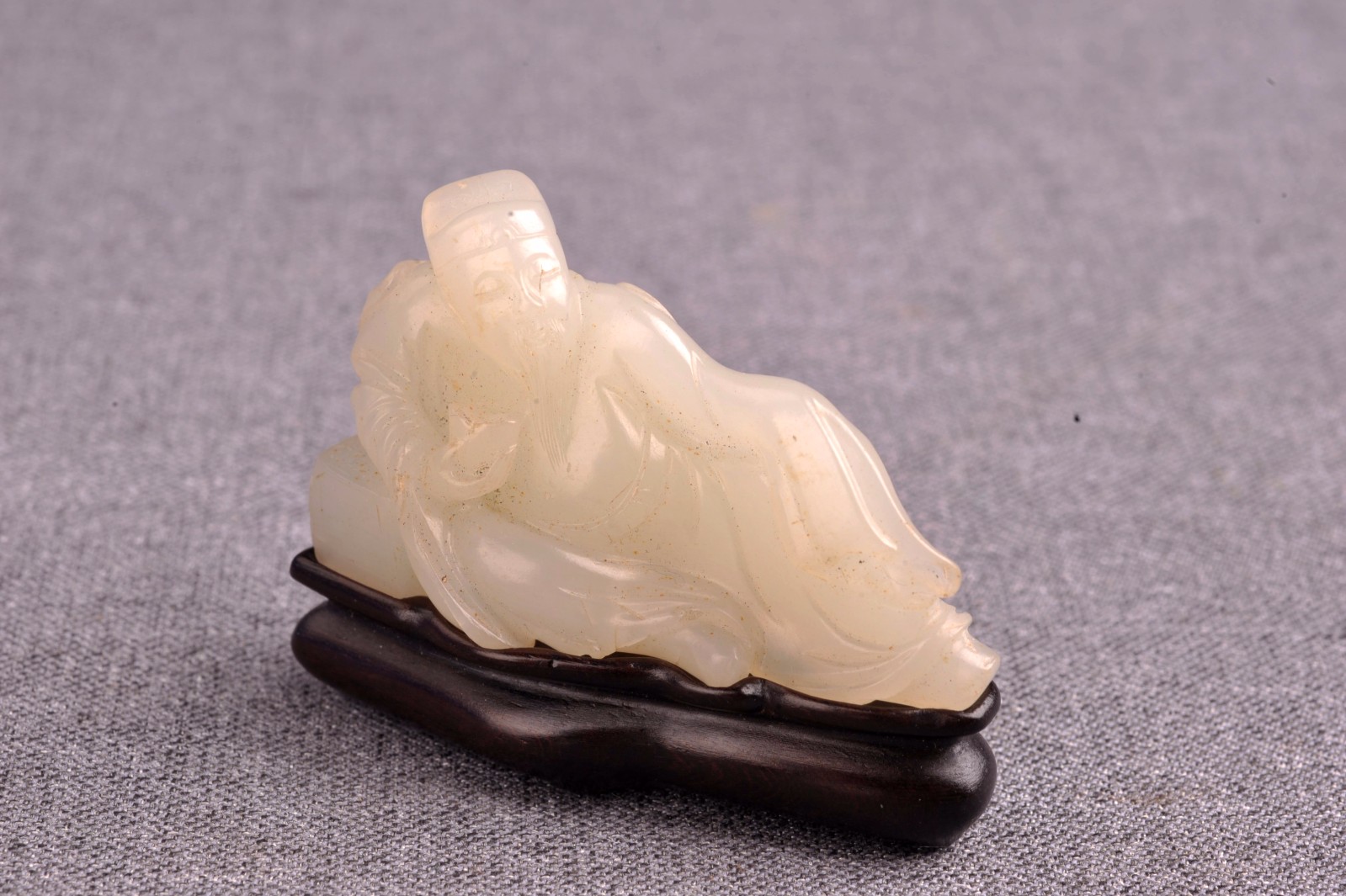 长5.5厘米,宽2厘米,高4厘米含座此尊太白像为清代之作。玉质纯净莹润,颜色青白自然。雕像取整块玉料为材,以圆雕技法,随形赋意,生动地塑出唐代大诗人李...