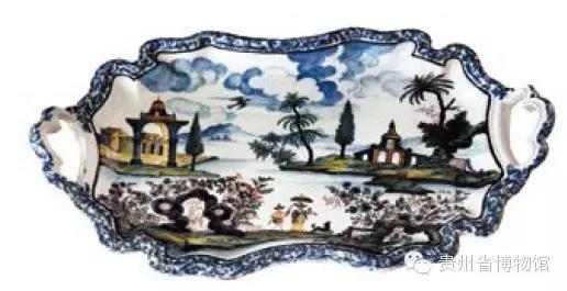 这件多重裂片式的大托盘带有手柄,代表了“中国风”的装饰特色,相对于“小桥式”它的变化更加复杂多样,类似于展览中展示的另一件大盘(cfr. cat. 76)论其尺寸、保存状况和画质量无疑是诺韦制造的同类作品中的佼佼者。