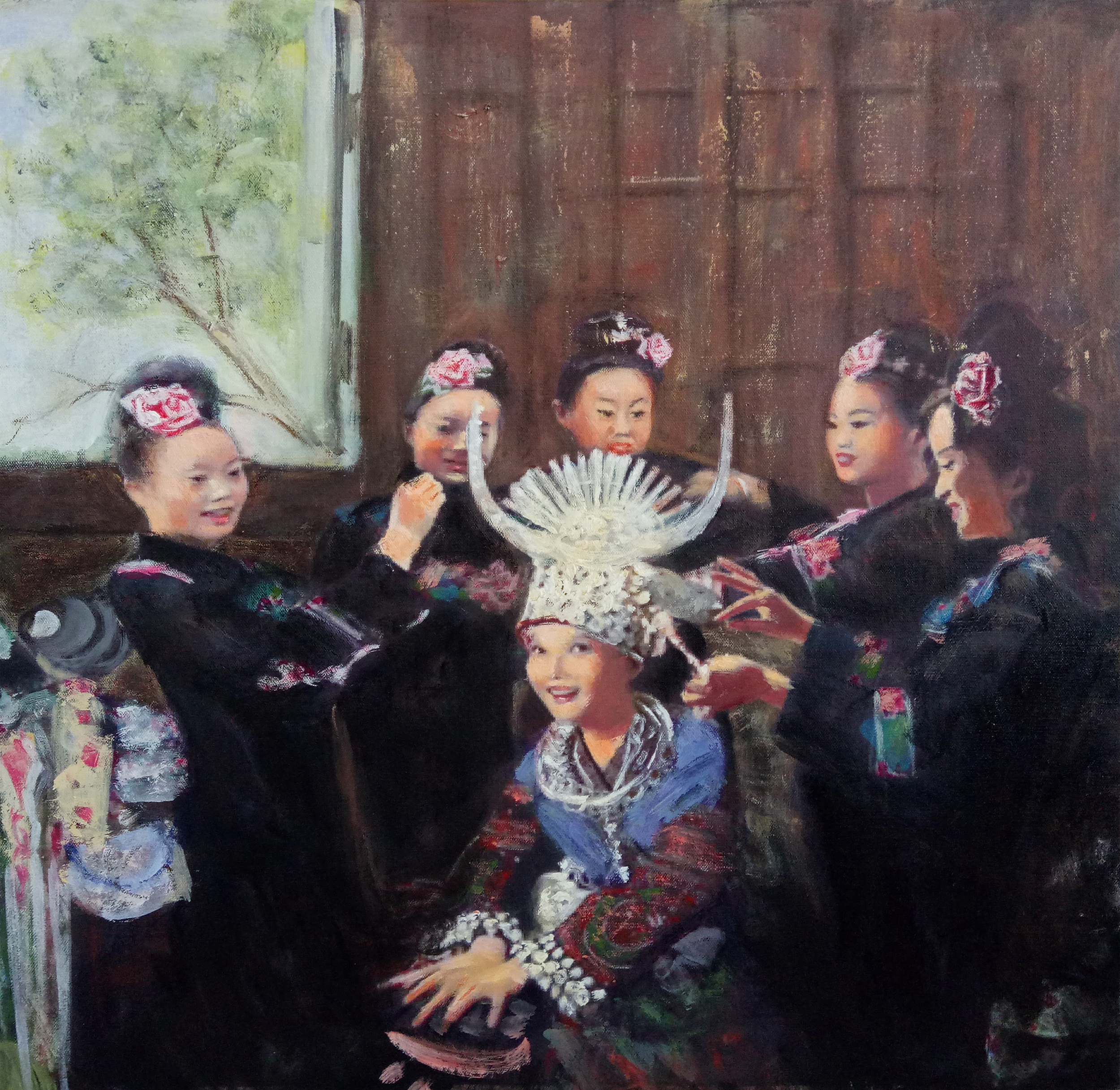 我和姊妹在梳妆,