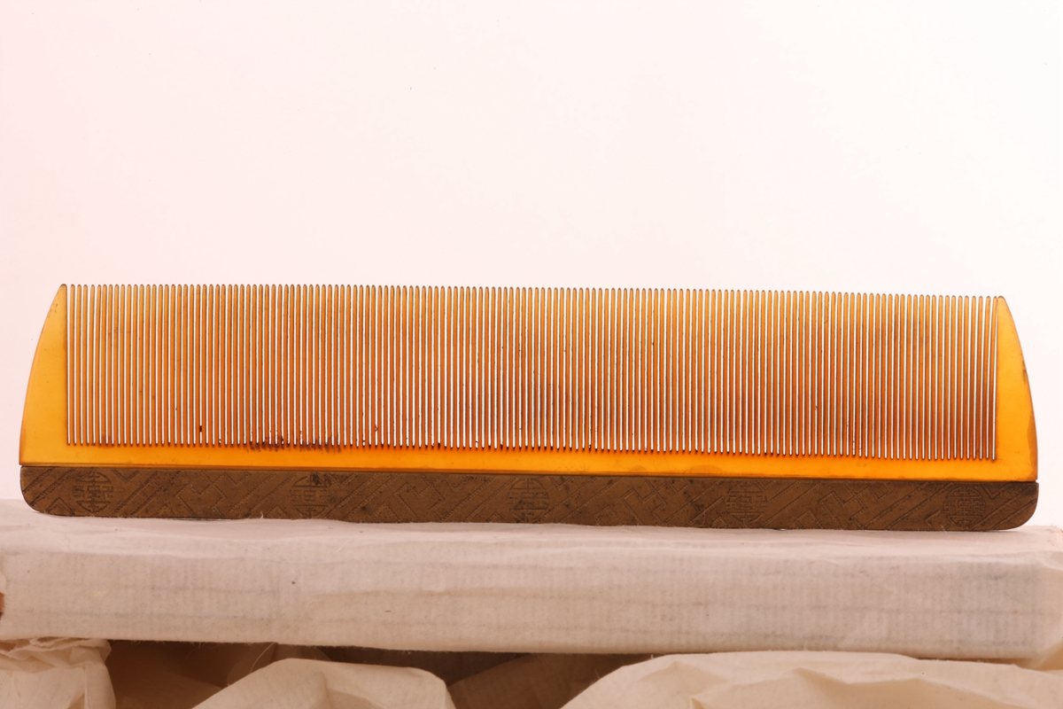3.2金漆柄万寿锦纹牛角梳