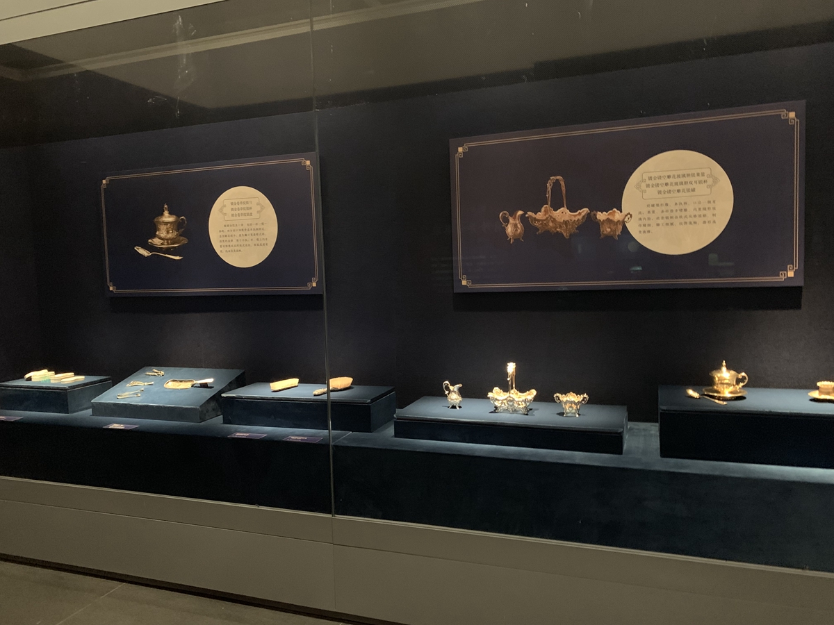 4.7镀金镂空雕花玻璃胆银果篮;镀金镂空雕花玻璃胆双耳银杯;镀金镂空雕花银罐