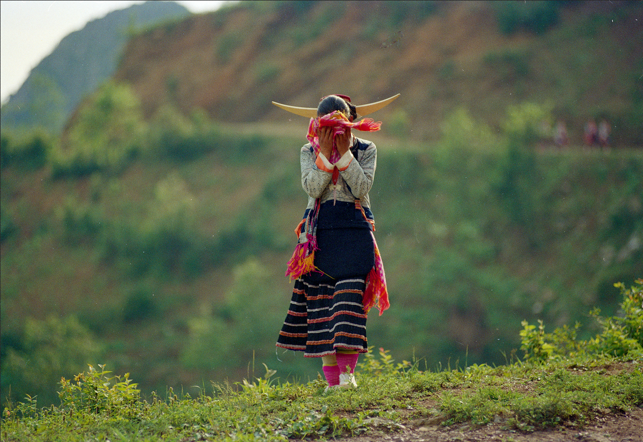 箐苗女孩13岁了,她即将成年,从一个孩童成为一个女孩。箐苗的成人礼通过服饰配件的变化来完成角色的转变,换装后就取得了恋爱与性交的资格,就可以参加春节的“跳花坡”“走寨”和“晒月亮”等传统婚恋活动了。2003年摄