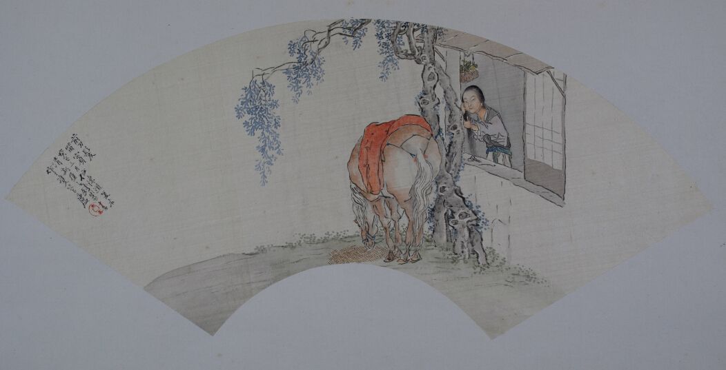 我国的扇子种类繁多,有纸扇、绢扇、葵扇、羽毛扇、竹编扇、麦秸扇等,扇子的形状也有方有圆,还有梅花、海棠、葵花形的。在扇面上题诗作画,是中国扇子独有的一大特色,这也是扇子之所以经久不衰、倍惹人爱的原因。书画扇面虽幅不盈尺,却题材广泛,风格多样,花鸟虫鱼、山水仕女、人物故事、千姿百态,如清人郑绩在《梦幻居画学简明》卷一中所言:“如作雄厚者,尺幅而泰山河岳之势;作淡远者,片纸而有秋水长天之思”。扇面书画由此成为浩瀚中国传统艺术海洋里泛起的经典浪花。