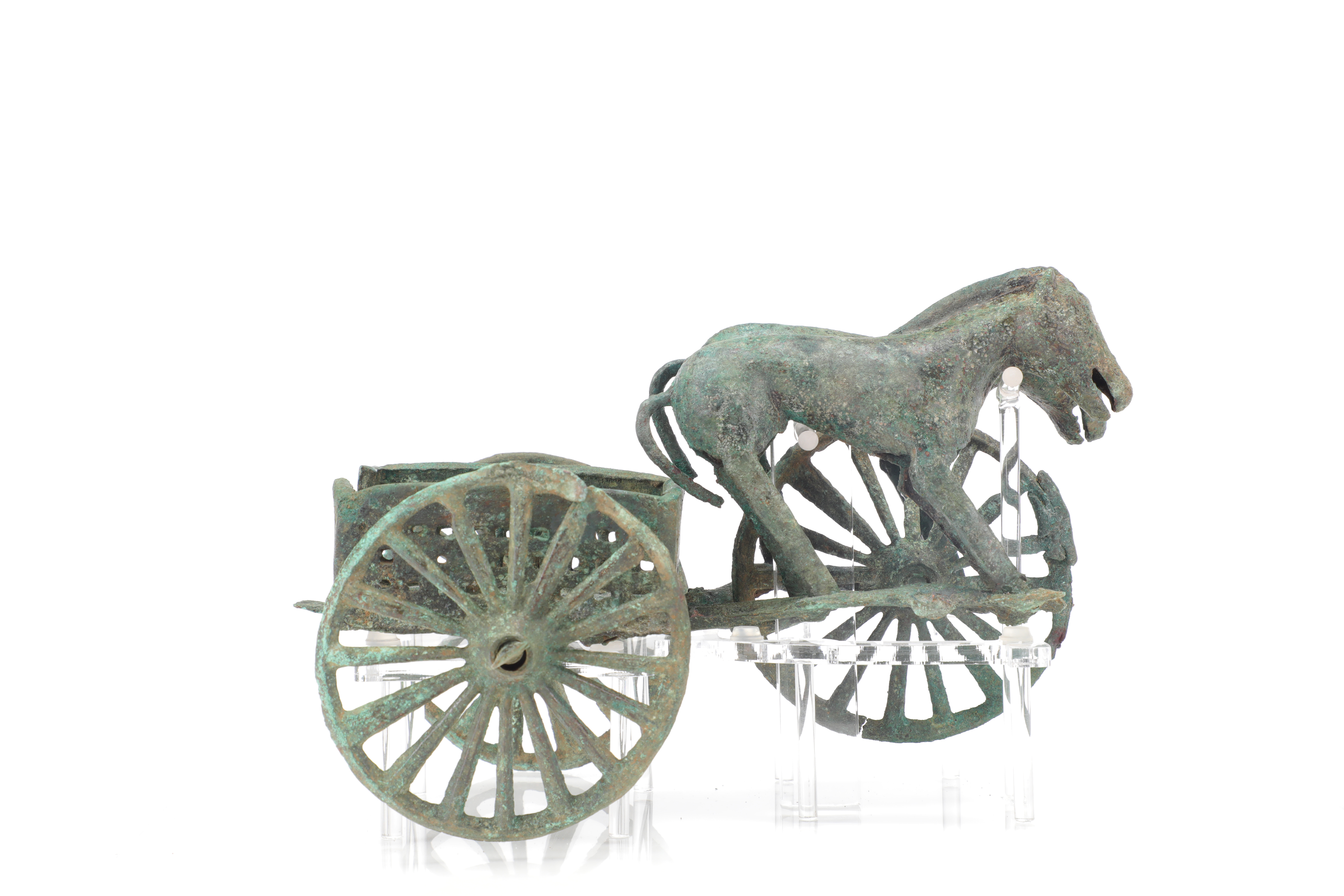 2.三轮铜马车和铜立人:2020年,在盐源老龙头遗址第57号墓葬的考古发掘中,出土了一组极具特色的青铜器,尤以三轮铜马车和铜立人像最为引人注目。出土时,铜立人像居于马车车舆之中,其双手持握着一件小型铜双耳罐模型。盐源老龙头出土的这辆三轮铜马车具有重要的学术价值,它不仅是目前国内出土的第一辆三轮铜马车,也是战国秦汉时期西南夷文化交流的实物见证。这一发现,生动揭示了当时西南夷各族群通过车马交通实现物质文化交流,以及在此过程中形成的独具特色的区域文化风貌。